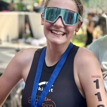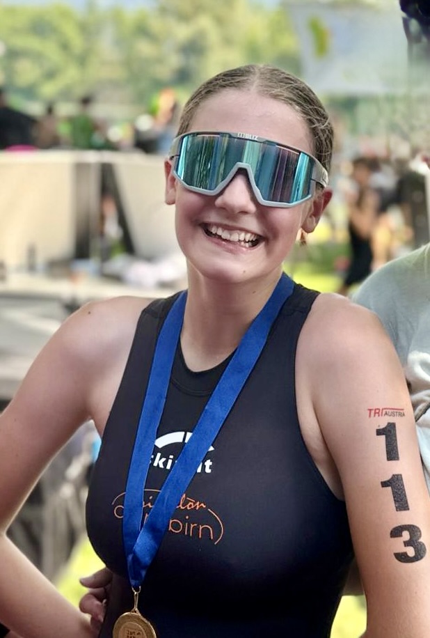 Am Samstag, den 9. August 2025 bestritt Coletta erfolgreich ihren 1. Triathlon am Jannersee! Es waren insgesamt 407 Teilnehmer:innen. Coletta startete in der Kategorie Schüler:innnen B w und absolvierte 300 m Schwimmen in 05:43, die 7,5 km Radfahren in einer Zeit von 13:14 Minuten und 2 km Laufen in 12:28.