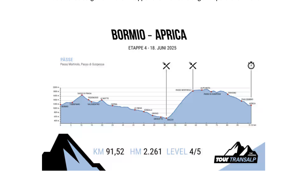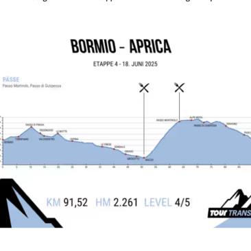 Etappe 4 führte von Bormio nach Aprica (92 km / 2260 hm). Mit dieser Etappe war der Mortirolo zu erklimmen, ein Radsport-Mythos und einer der steilsten Anstiege der Tour mit bis zu 18 % !