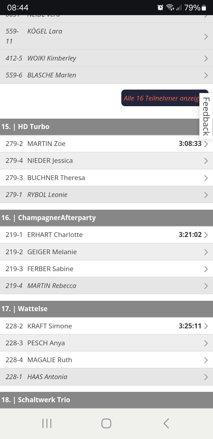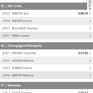 Im Team ChampagnerAfterparty fuhren Meli und ihr Team im Team Time Trail (TTT), welcher am Samstag stattfand, auf den 16. Platz und mussten den Marathon leider aus dem Startblock E starten.