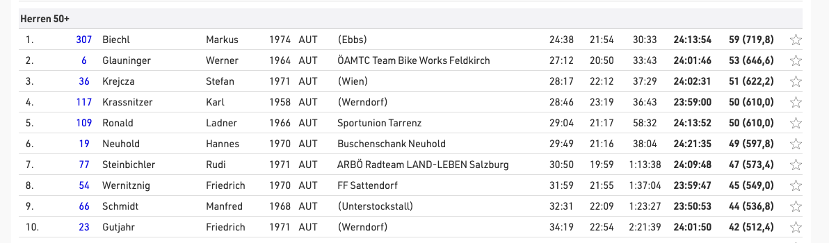 Die „Königsdisziplin" ist der Bewerb über 24 Stunden. Werner erzielte den erstklassiger 2. Platz und fuhr in einer Zeit von 24:01:46 insgesamt 53 Runden mit 646,6 km.